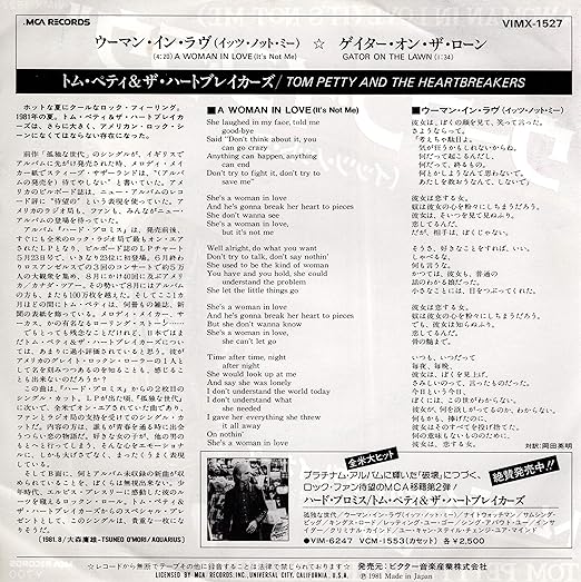 MCA Records MCA 730. Barry from Sauquoit Ny On July 26th 1981 A Woman In Love Its Not Me by Tom Petty and the Heartbreakers entered Billboards Hot Top 100 chart at position 82 and on August 9th 1981 it peaked at 79 for 1 week and spent 6 weeks on the Top 100. Tom Petty and the Heartbreakers A Woman in Love Its Not Me was released as the second single from Hard Promises in June 1981.