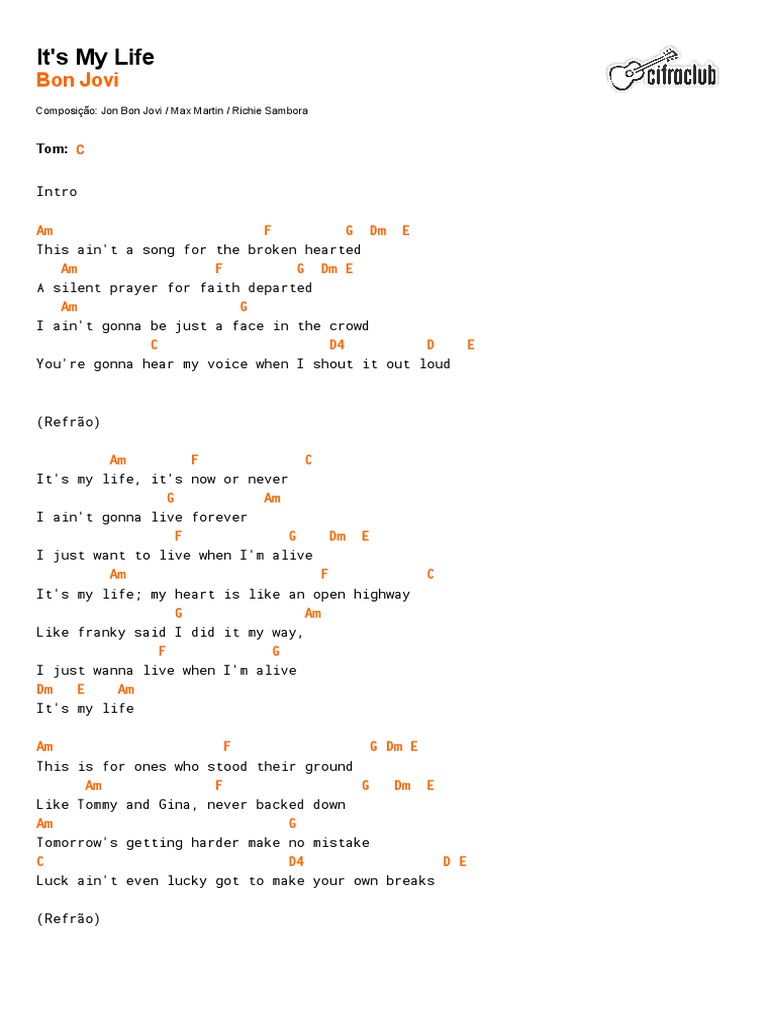 Cifra Club Bon Jovi It S My Life Pdf Musical Compositions Rock Songs